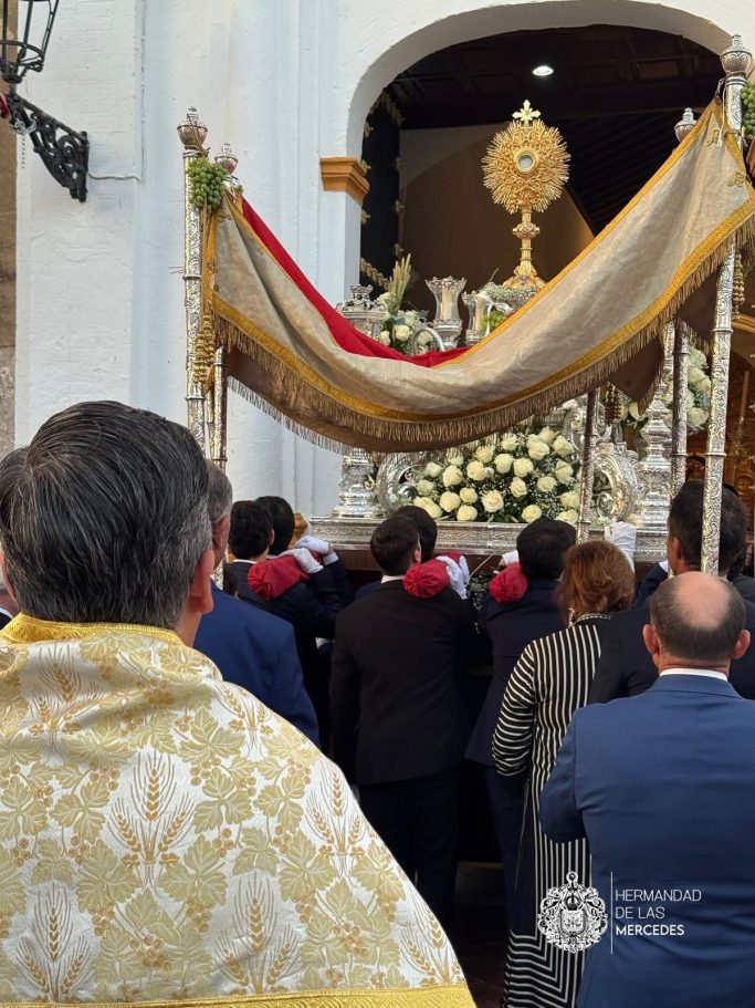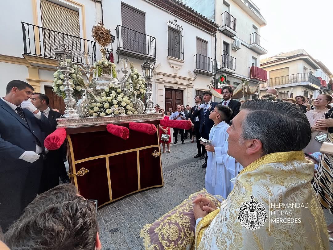 Debido al carácter Sacramental de la Hermandad, se encarga de organizar cada año la procesión del Corpus Christi el domingo de la festividad. Formado por un cortejo de todas las cofradías de la ciudad, abriendo la Cruz Alzada y con un camino de cirios con representaciones de las Hermandades de Penitencia, las de Gloria las cuáles acaban con el Simpecado de la Hermandad, y abriendo un nuevo cortejo con el estandarte Sacramental y las asociaciones del mismo. Finalmente el paso de la custodia y tras él, los sacerdotes y el palio. El recorrido que se realiza cada año comienza en la Parroquia de María Auxiliadora y culmina en la de Santiago Apóstol una vez pasado por los altares montados en las calles en honor a Jesús Sacramentado.